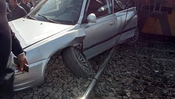 نجاة السائق بإعجوبة.. قطار يطيح بسيارة على مزلقان بـ منشأة القناطر