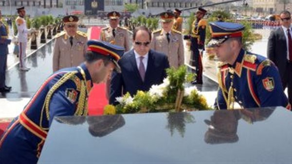 محافظ بني سويف يضع إكليلا على قبر الجندي المجهول احتفالا بالعيد القومي