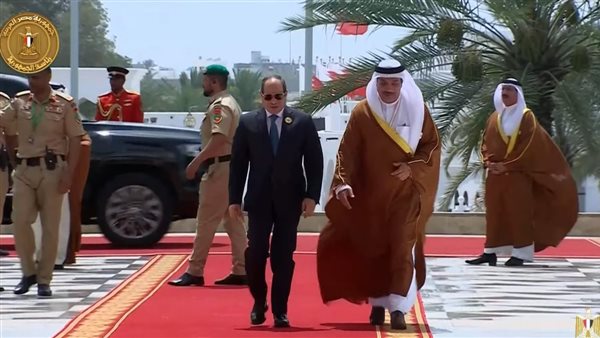 مراسم استقبال رسمية للرئيس السيسي لدى وصوله للعاصمة البحرينية المنامة.. بث مباشر