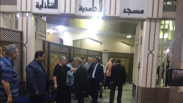 محسن منصور يتلقى عزاء والده بمسجد الحامدية الشاذلية.. صور