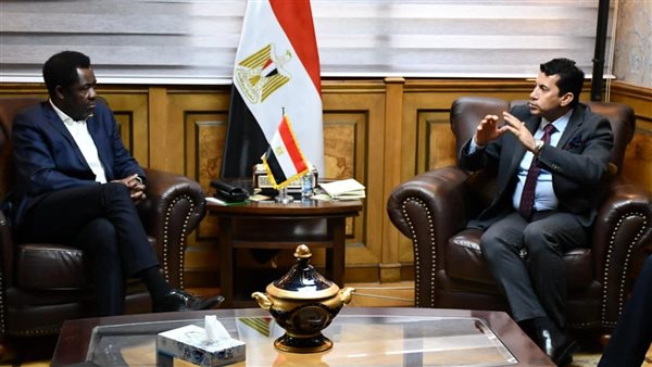 وزير الرياضة يلتقي الأمين العام للاتحاد الإفريقي لكرة القدم| صور