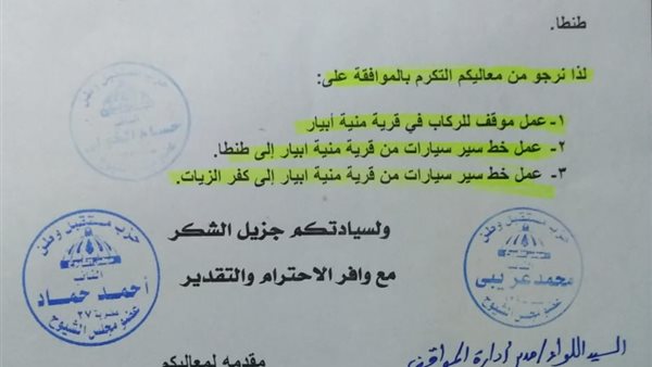 أهالي قرية منية إبيار يتقدمون بشكوى عاجلة لمحافظ الغربية