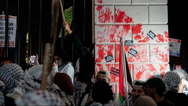 متظاهرون أمريكيون يلطخون أبواب البيت الأبيض بالطلاء الأحمر تضامنا مع غزة