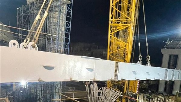 تركيب الكمر الخرساني على أعمدة مسار محطات الخط الثالث لمترو الجيزة