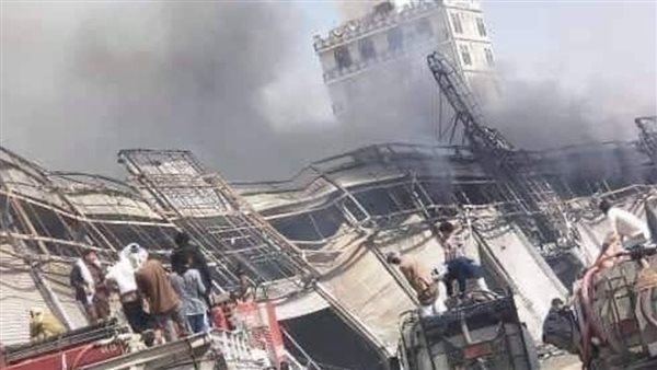 شاهد.. اندلاع حريق هائل بأكبر المراكز التجارية بصنعاء الخاضعة للحوثيين