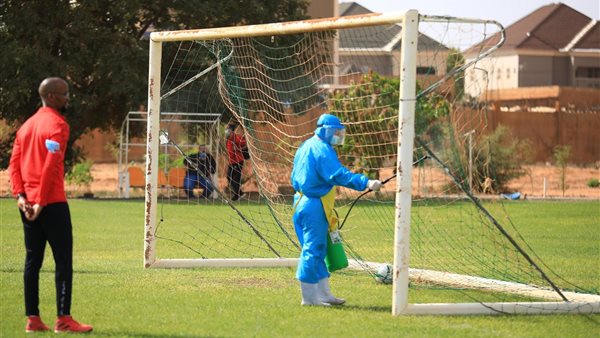 تعقيم ملعب التدريب قبل المران الأخير للأهلي في النيجر