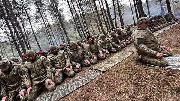 قافلة عسكرية شيشانية تتوقف لأداء الصلاة في أوكرانيا.. فيديو