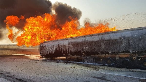 تفاصيل اشتعال النيران في سيارة مواد بترولية على طريق السويس
