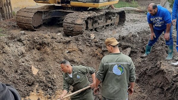 إصلاح كسر بخط الطرد الرئيسي للمياه بطلخا.. صور