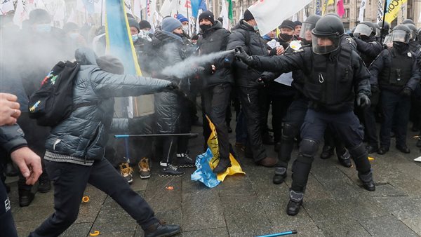 إصابة 70 شخصا في اشتباكات بين الشرطة ومحتجين على العزل بأوكرانيا