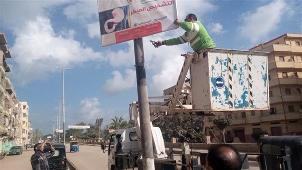 إزالة 130 لافتة إعلانية مخالفة في شوارع وميادين الشرقية.. صور