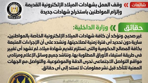 الحكومة تنفي وقف العمل بشهادات الميلاد الإلكترونية القديمة وإلزام المواطنين باستخراج شهادات جديدة