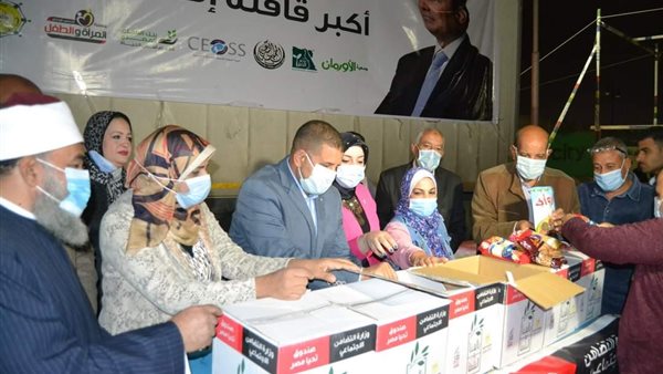 محافظ بني سويف يستقبل أكبر قافلة للمساعدات الإنسانية للأسر الأولى بالرعاية
