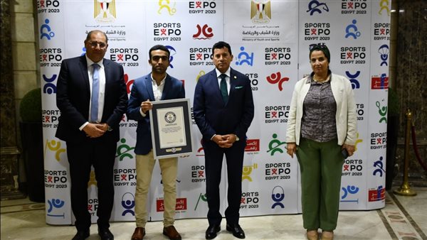 وزير الرياضة يُكرم على منير صاحب الرقم القياسي بموسوعة جينيس فى الجامب اسكوات