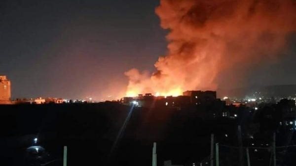 حريق هائل في سوق لبيع المشتقات النفطية شمال شرق صنعاء