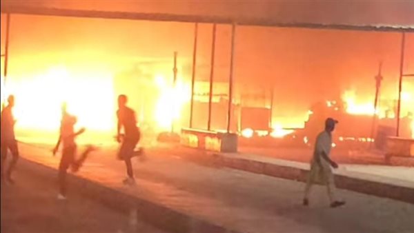 حريق هائل في عدد من المحال التجارية بموقف السلام الجديد