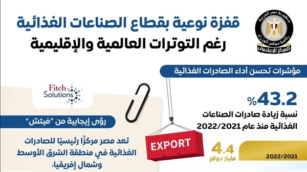 فيتش: مصر مركز رئيسي لصادرات الغذاء بالشرق الأوسط وشمال إفريقيا