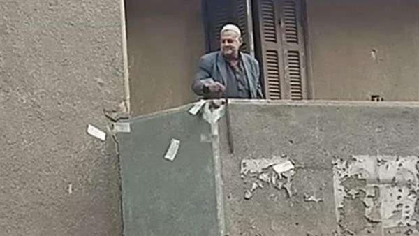 ادعوا لعمكم صبري .. مهندس متقاعد يلقي بالأموال من «البلكونة» على أهالي منطقته.. صور وفيديو