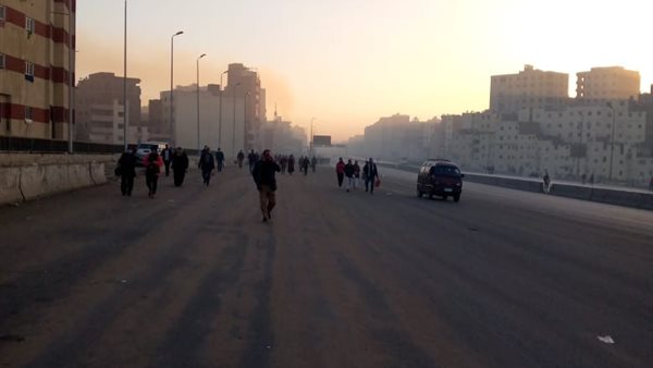 توقف حركة الدائري بين المحور والمريوطية بسبب عمارة حي الهرم المحترقة.. صور وفيديو