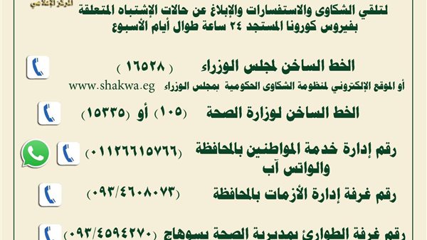 الوزراء: 751 شكوى واستغاثة من مشتبه بإصابتهم بكورونا خلال نوفمبر