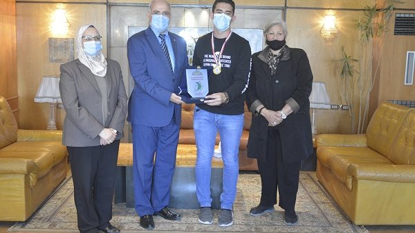 رئيس جامعة الفيوم يكرم طلاب كلية الصيدلة الفائزين بتصفيات جائزة هولت العالمية