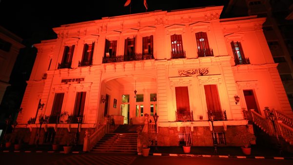 إنارة ديوان عام وزارة الصحة باللون البرتقالي احتفالًا باليوم العالمي للسرطان.. صور