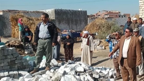 رفع أكثر من 50 طن مخلفات وإزالة حالة تعد بالبناء علي الأرض الزراعية في بني سويف