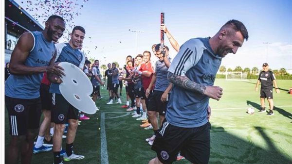 ميسي يحتفل بالكرة الذهبية مع لاعبي إنتر ميامي الأمريكي