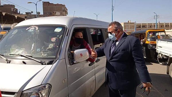 حملة للتفتيش على ارتداء الكمامات في النقل العام بأبوقرقاص في المنيا.. صور