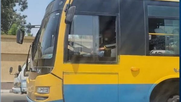 ضبط سائق أتوبيس نقل عام وضع قدمه بجوار النافذة وخاطر بحياة المواطنين