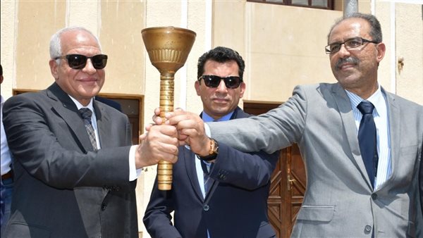 وزير الرياضة ومحافظ الجيزة يستقبلان شعلة أسبوع شباب الجامعات الـ13