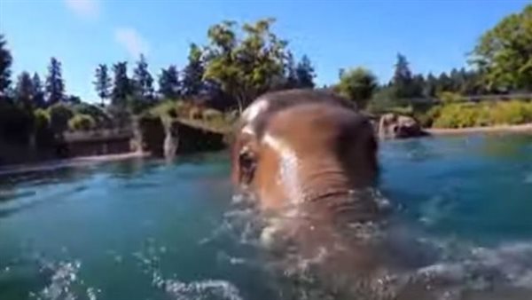 للتغلب على ارتفاع الحرارة.. شاهد فيلة تستمتع بالسباحة في الماء المثلج