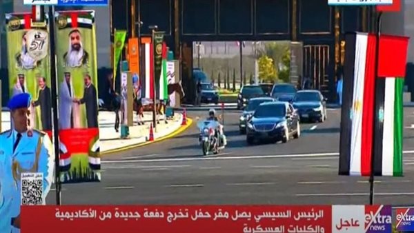 الرئيس السيسي ونظيره الإماراتي يصلان مقر حفل تخرج دفعة جديدة من الأكاديمية والكليات العسكرية