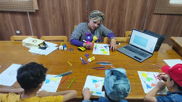 بالرسومات.. أطفال مكتبة مصر الجديدة يبعثون رسالة تضامن مع أطفال غزة