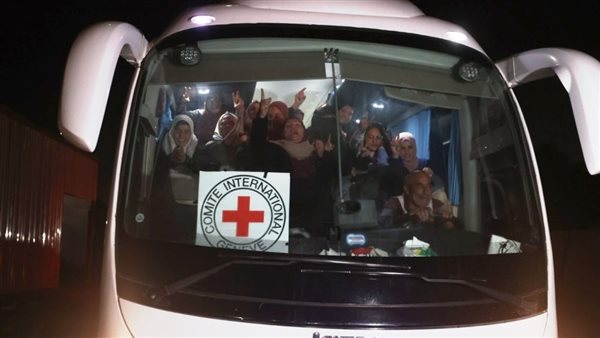 سيارات الصليب الأحمر تصل إلى موقع تسلم محتجزين إسرائيليين في النصيرات