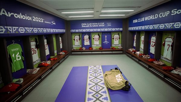 غرفة ملابس ملعب الجوهرة تتزين بقميص الأهلي قبل مواجهة فلومينينسي.. صور