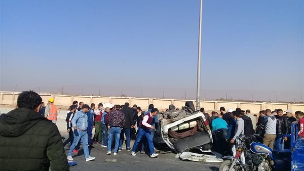 انقلاب سيارة ميكروباص على الطريق الدائري بالسلام.. صور