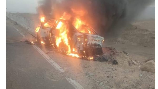 تفاصيل تفحم زوجين وأبنائهم الثلاثة داخل سيارة على طريق الواحات