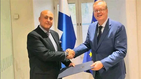 السفير المصري في هلسنكي يسلم صورة من أوراق الاعتماد إلى مدير المراسم الفنلندية
