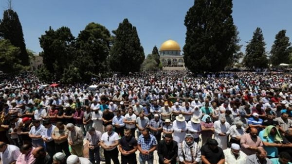 الفلسطينيون يتدفقون على المسجد الأقصي لأداء صلاة الجمعة