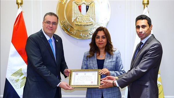 وزيرة التنمية المحلية تتسلم من رئيس التنظيم والإدارة شهادة اعتماد مركز سقارة للتدريب