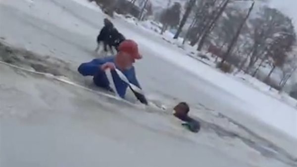 شاهد.. مراهقة تنقذ طفلا من الغرق في بركة مياه متجمدة