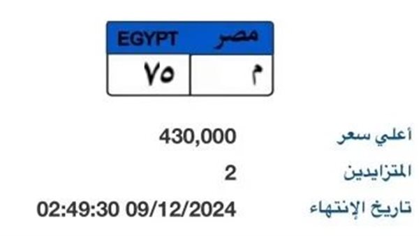«م - 75» لوحة مميزة بسعر يقترب من نصف مليون جنيه