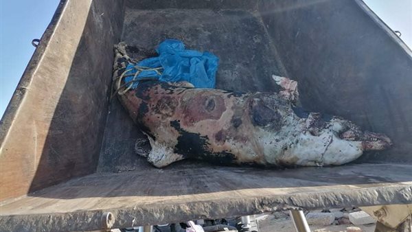صياغة ........بالصور .. لجنه من علوم البحار تتولي دفن الدولفين بالمدفن الصحي بالمعهد