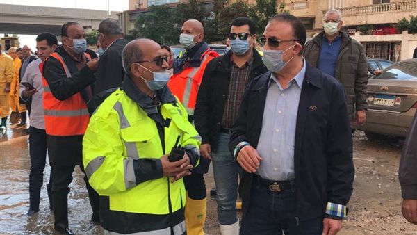 محافظ الإسكندرية يتابع تصريف تراكمات مياه الأمطار بحي المنتزه