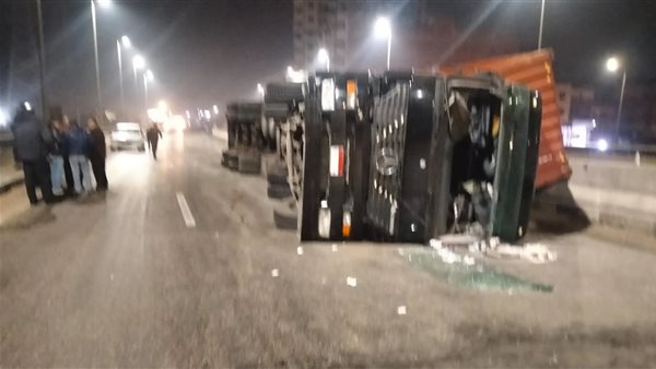 إعادة حركة المرور بطريق القاهرة الإسكندرية الزراعي بعد رفع تريلا وكونتينر