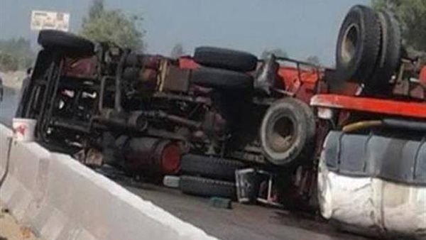 مصرع سائق في انقلاب سيارة نقل سولار على طريق السويس - القاهرة