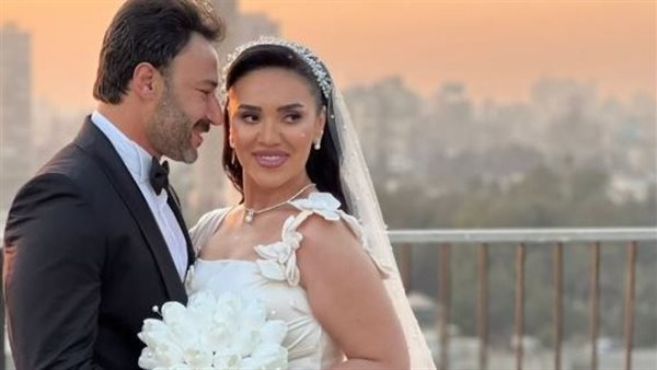 جلسة تصوير لمي فاروق ومحمد العمروسي بفستان الزفاف على النيل