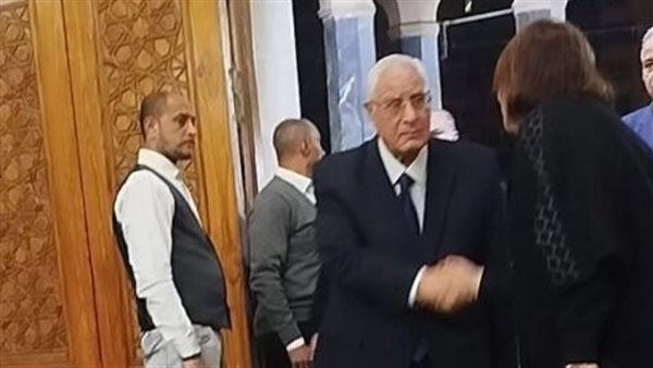 المستشار عدلي منصور والإعلامى عمرو الليثي في عزاء عازفة البيانو مشيرة عيسي..صور