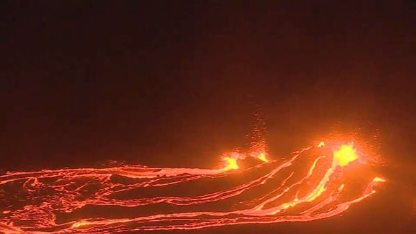 مصحوبة بدخان كثيف.. تدفق الحمم البركانية لبركان آيسلندا (فيديو)